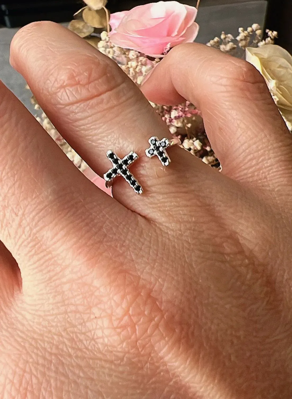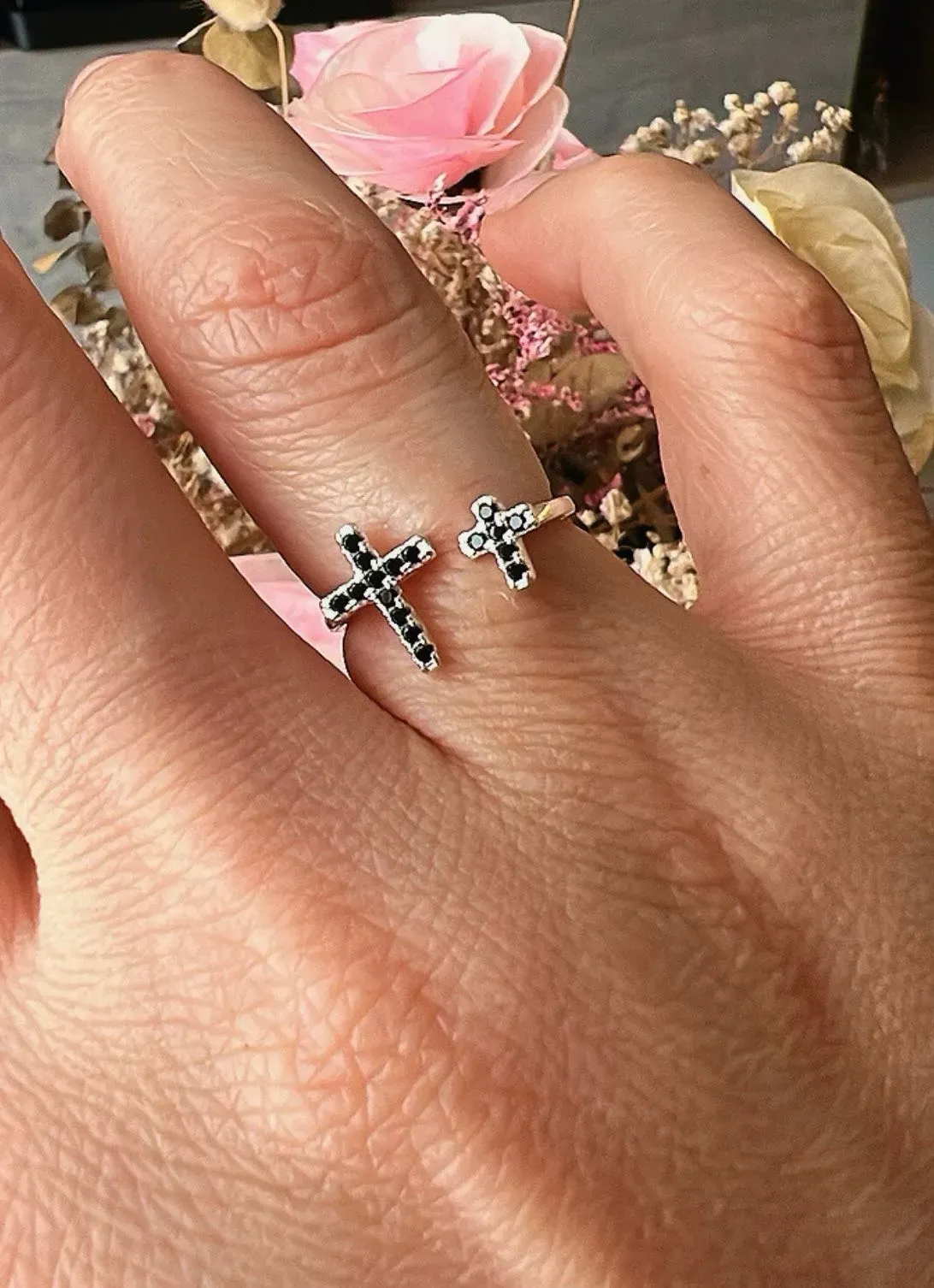 ✨ Anillo Ajustable con Microzirconios Negros – Plata 925 ✨