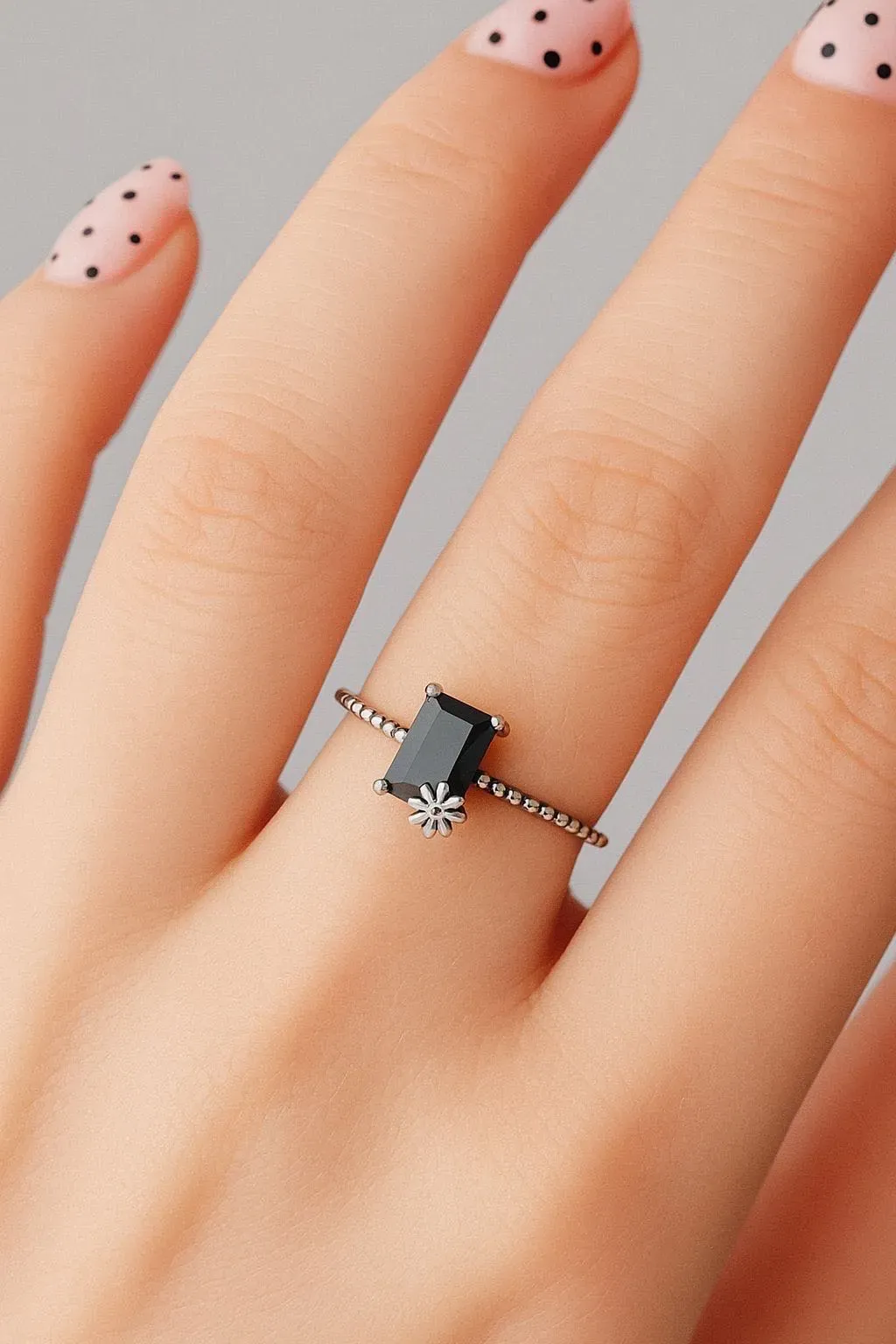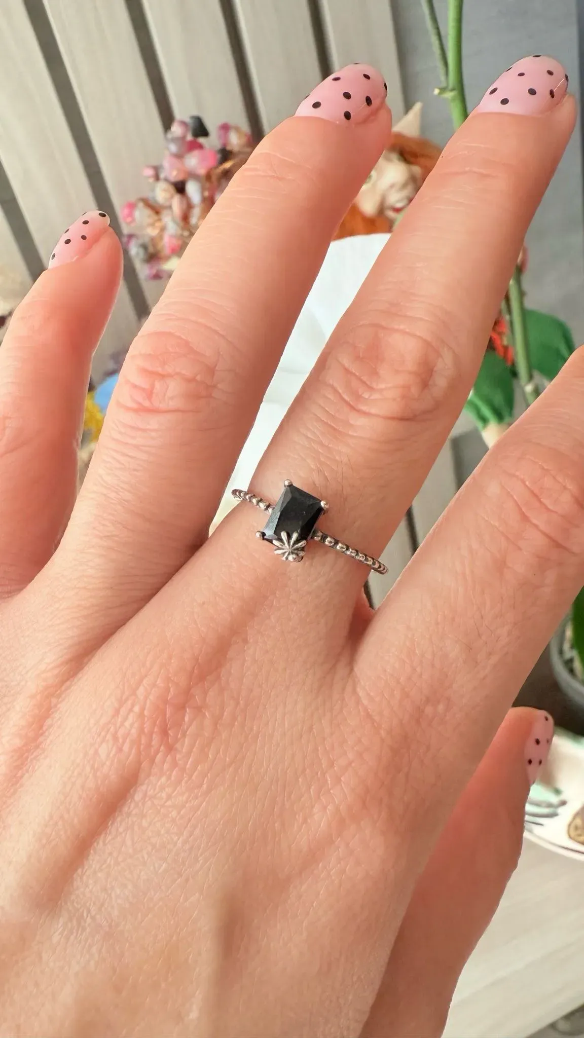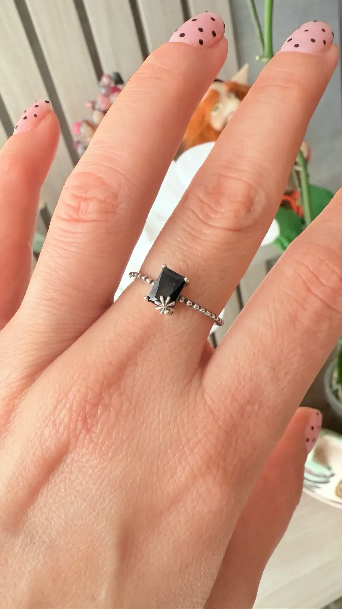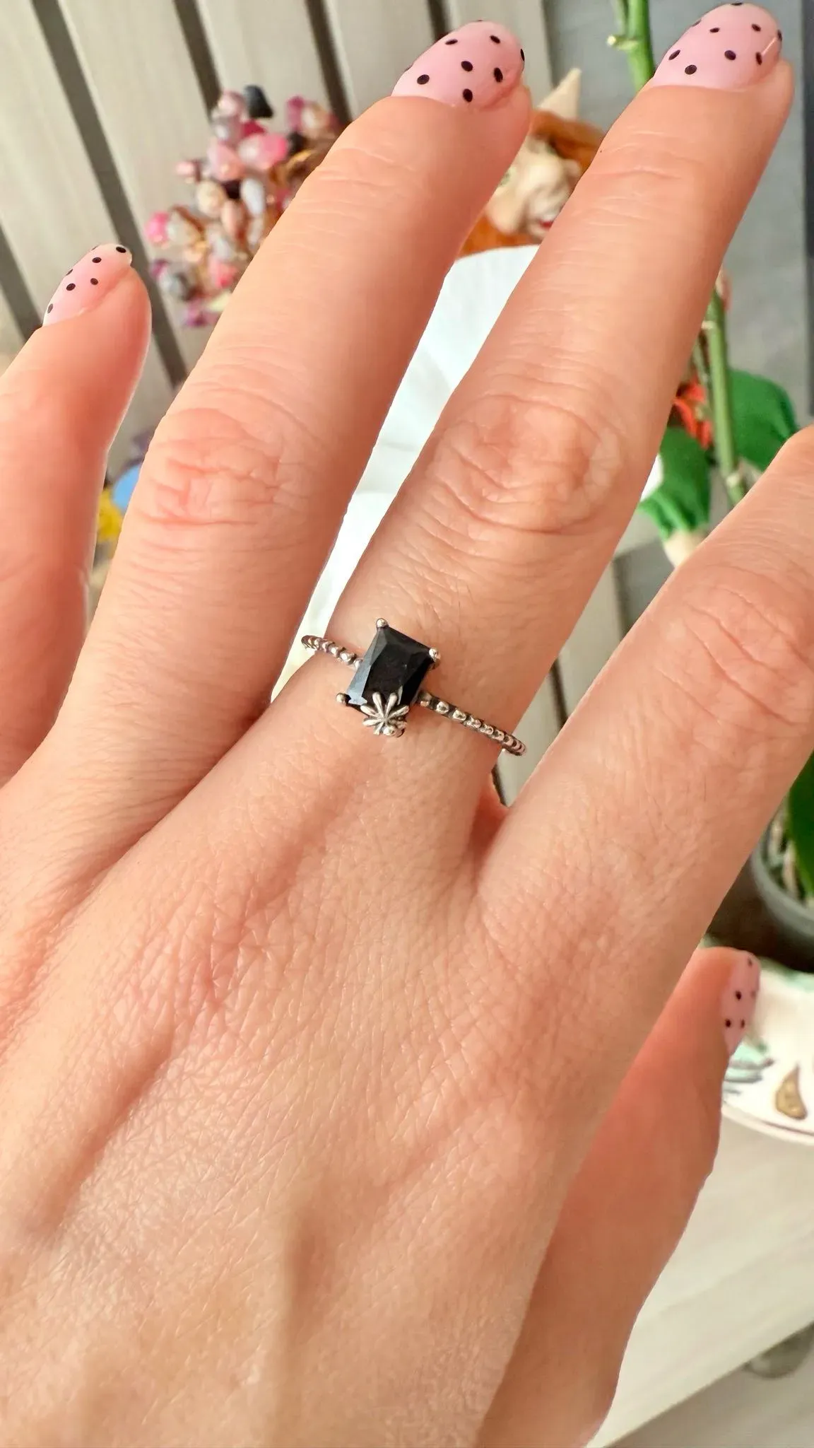 ✨ Anillo con Circonio Negro – Plata 925 ✨📏 Talla: 9