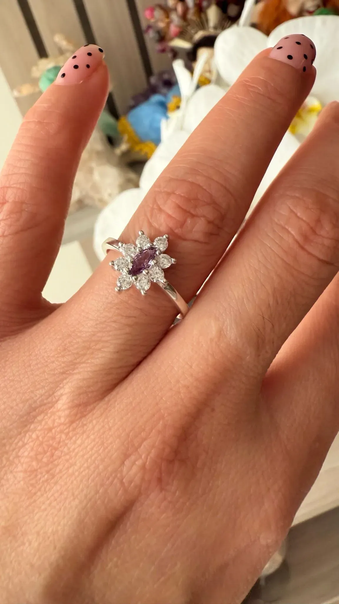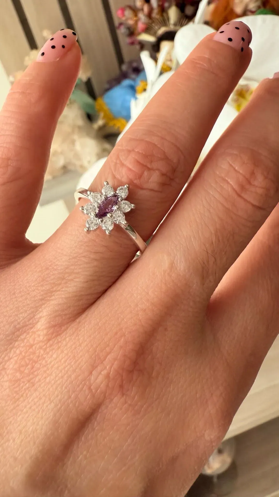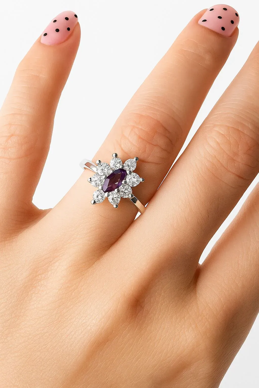 Diseño delicado y brillante, elaborado en plata 925, con microzirconios amatista y blancos que aportan sofisticación, color y elegancia 💫