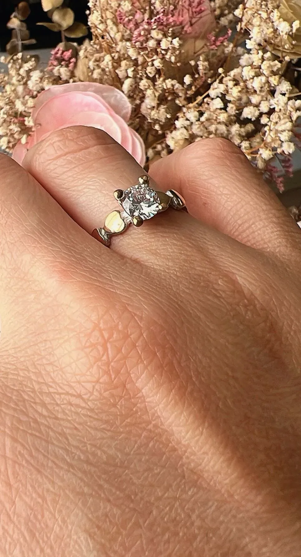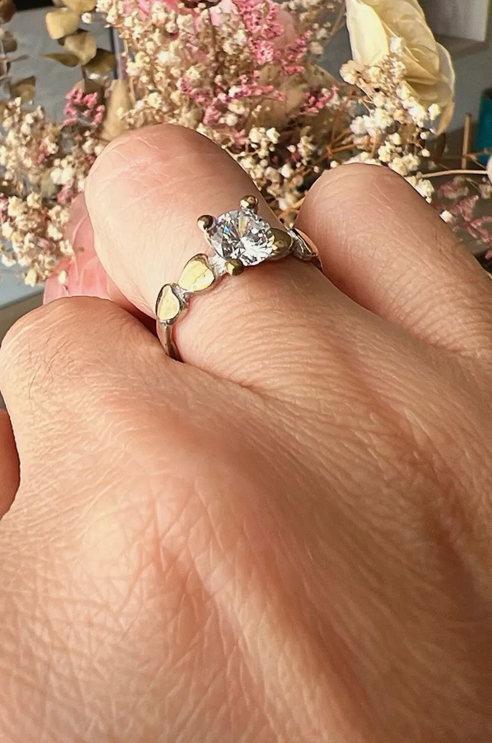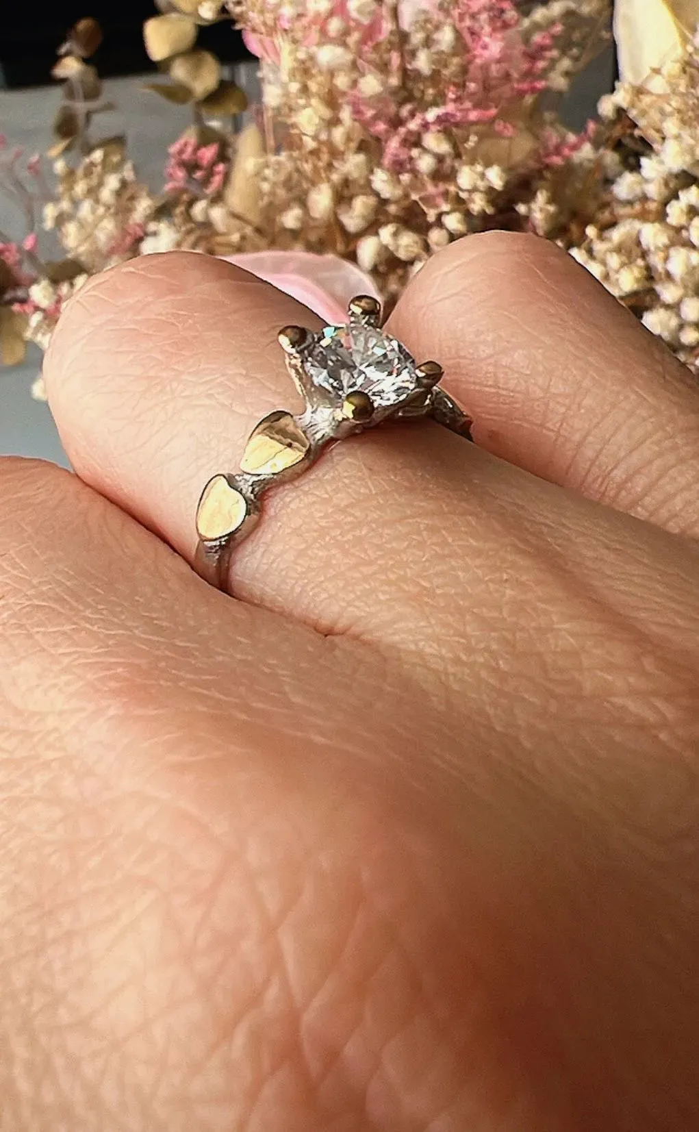 ✨ Anillo Solitario – Plata 950 con Láminas de Oro 18K ✨📏 Talla: 8
