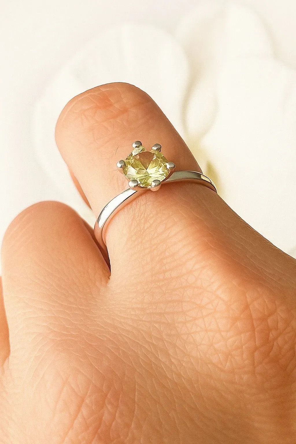 ✨ Anillo Solitario con Circonio Citrino – Plata 950 ✨📏 Talla: 8
