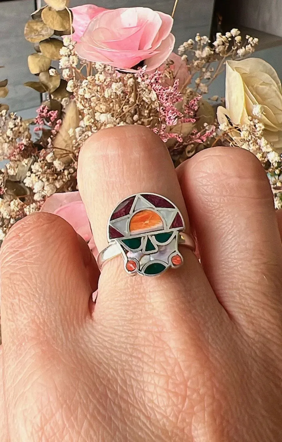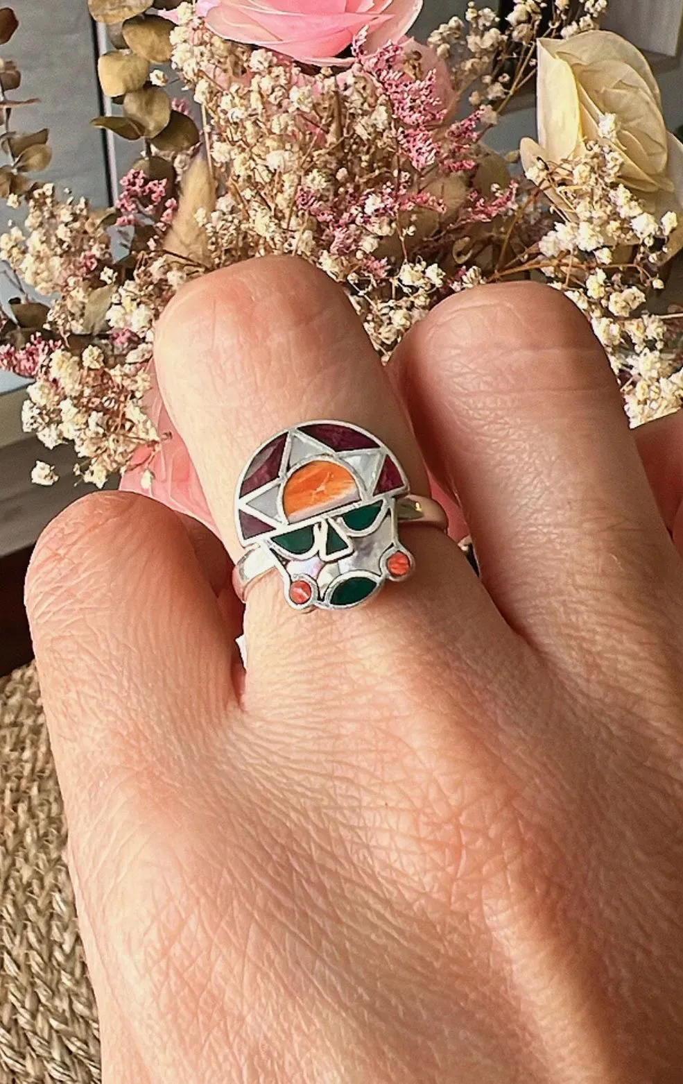 ✨ Anillo Tumi – Plata 950 con Piedras y Conchas Naturales ✨📏 Talla: 8
