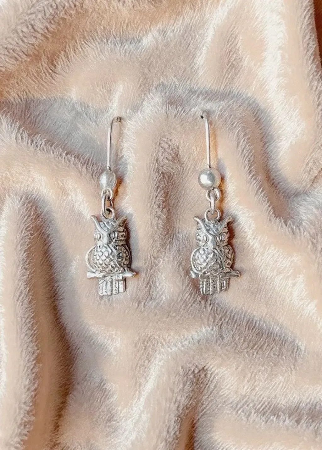 ✨ Aretes Colgantes Diseño Búho Labrado – Plata 950 ✨