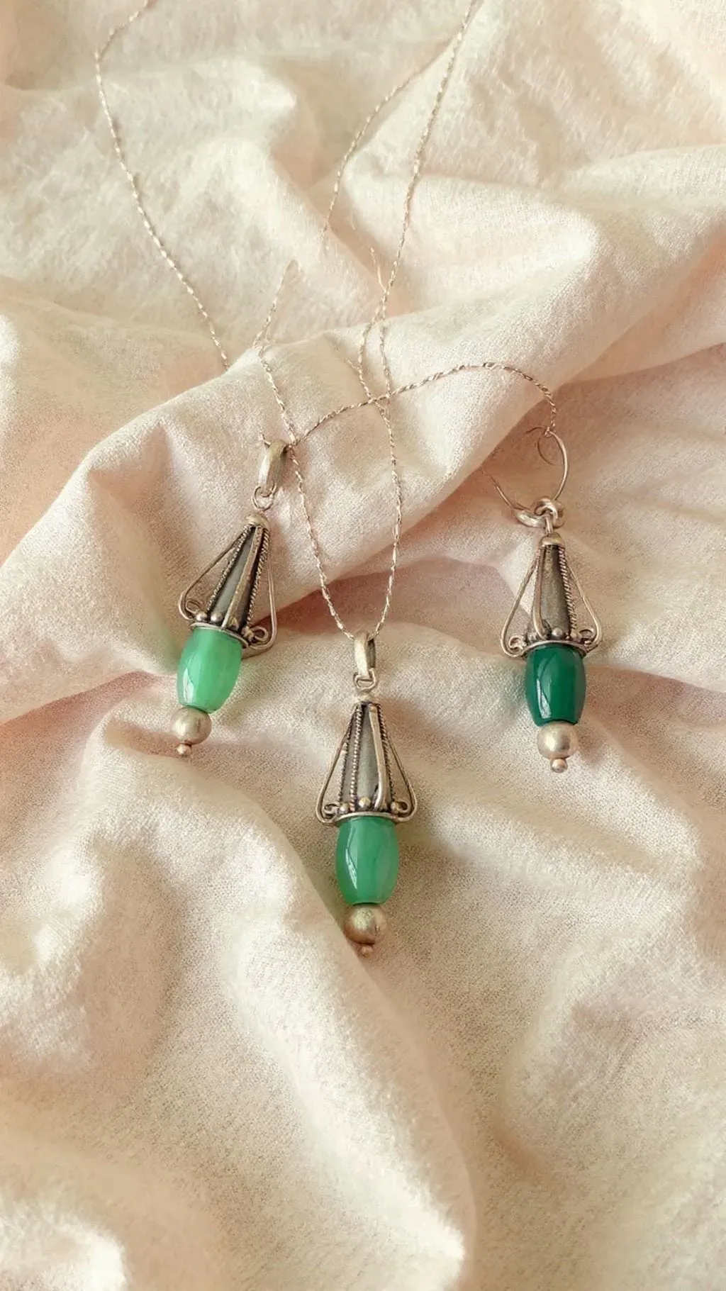 ✨ Colección Jade – Plata 950 ✨Incluye:🌙 Dije + Aretes en Plata 950⛓️ Cadena en Plata 925