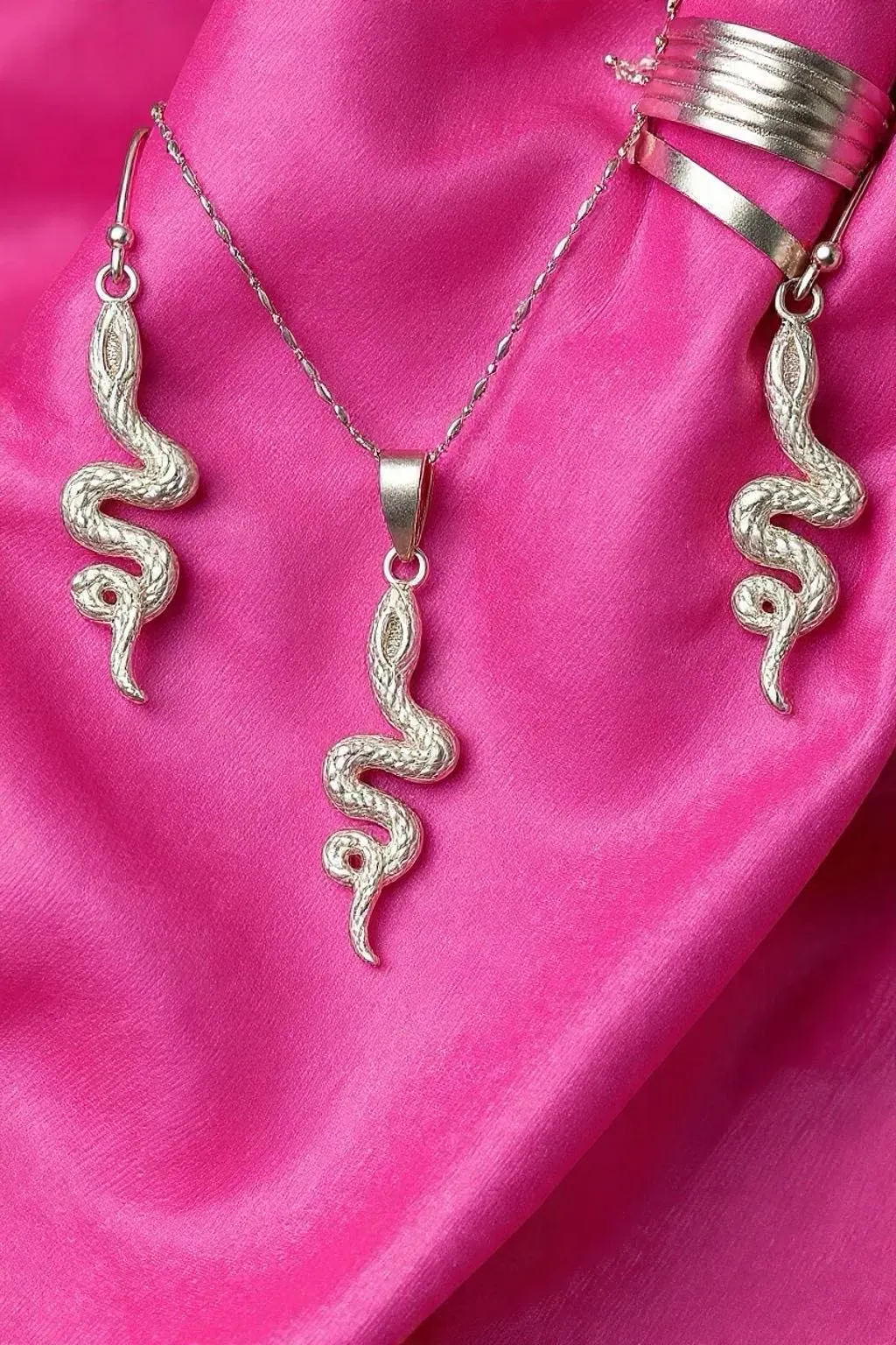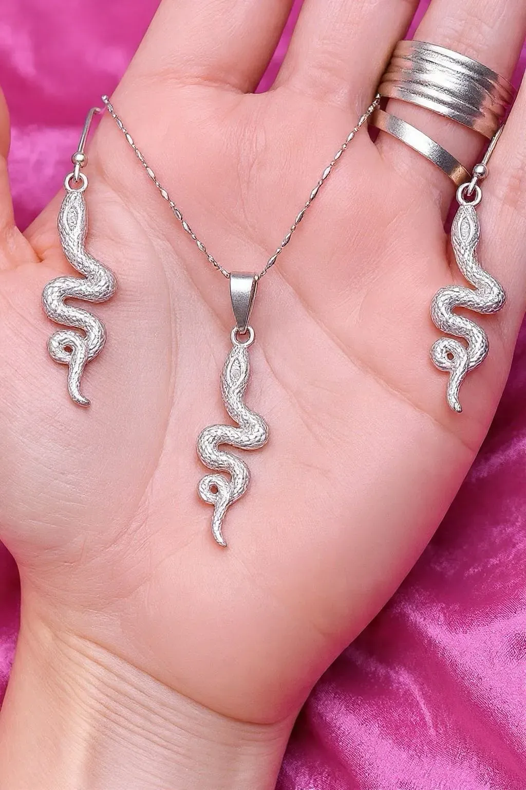 ✨ Colección Serpientes – Plata 950 ✨Incluye:🌙 Dije + Aretes en Plata 950⛓️ Cadena en Plata 925