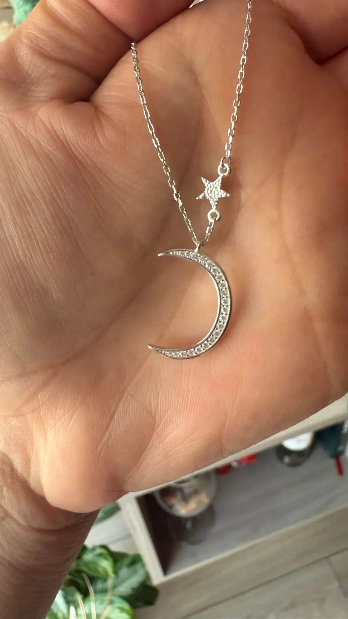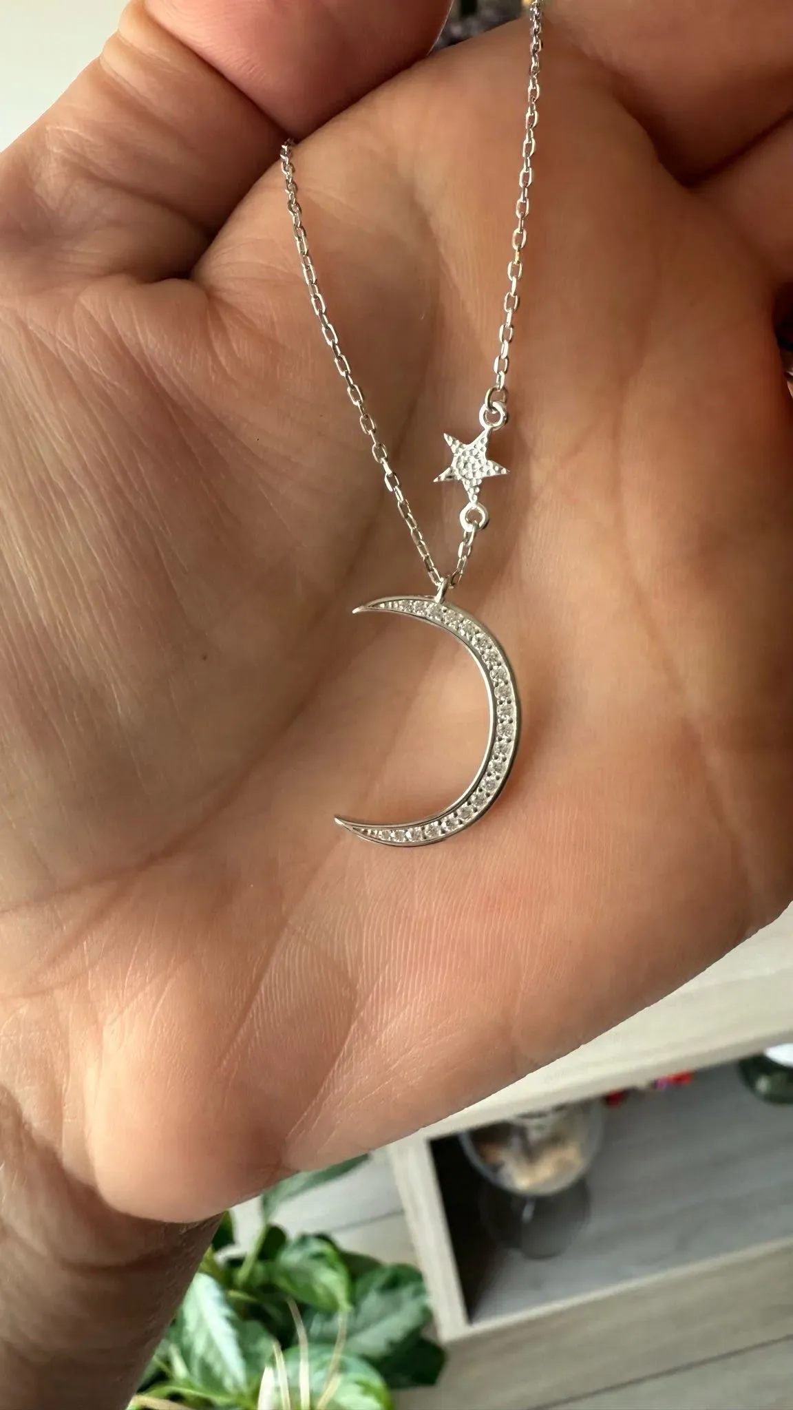 ✨ Collar Media Luna y Estrellita con Microzirconios – Plata 925 ✨mide 55 cm