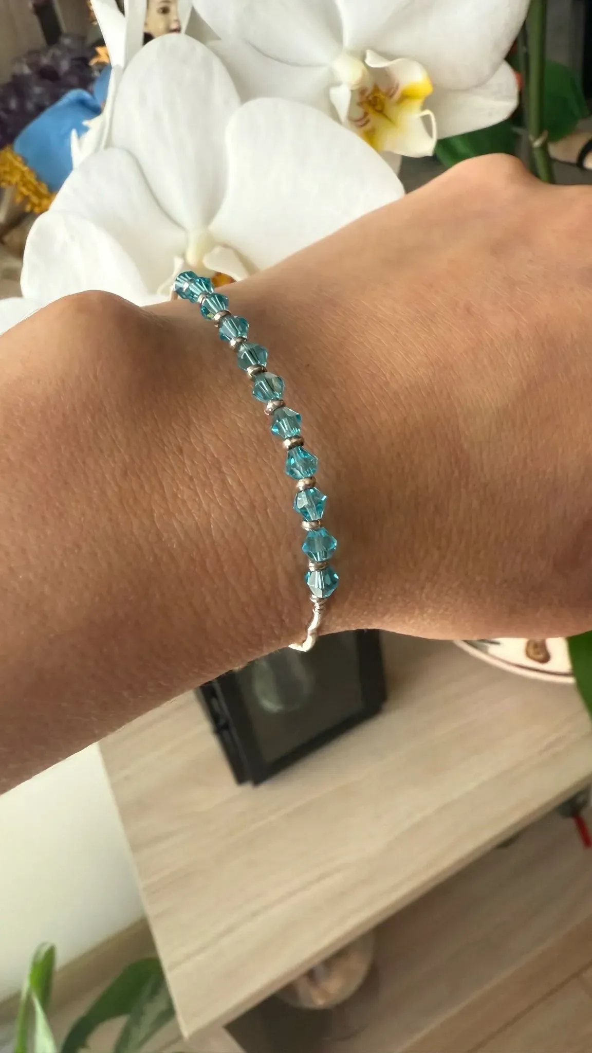 ✨ Pulsera con Cristal de Murano Celeste – Plata 950 ✨