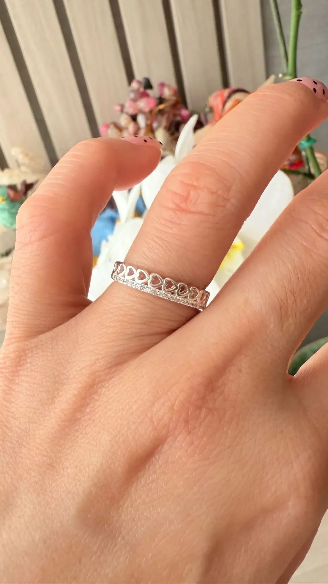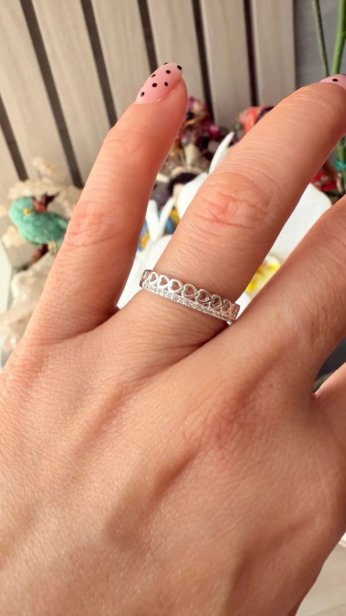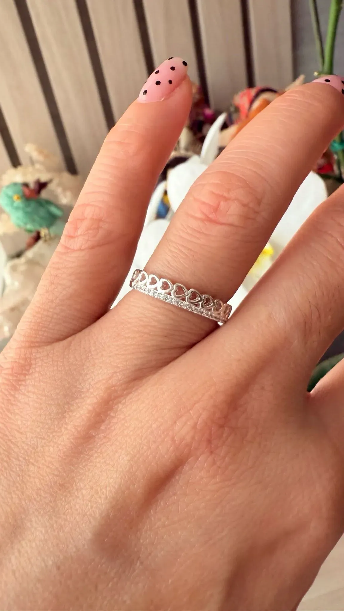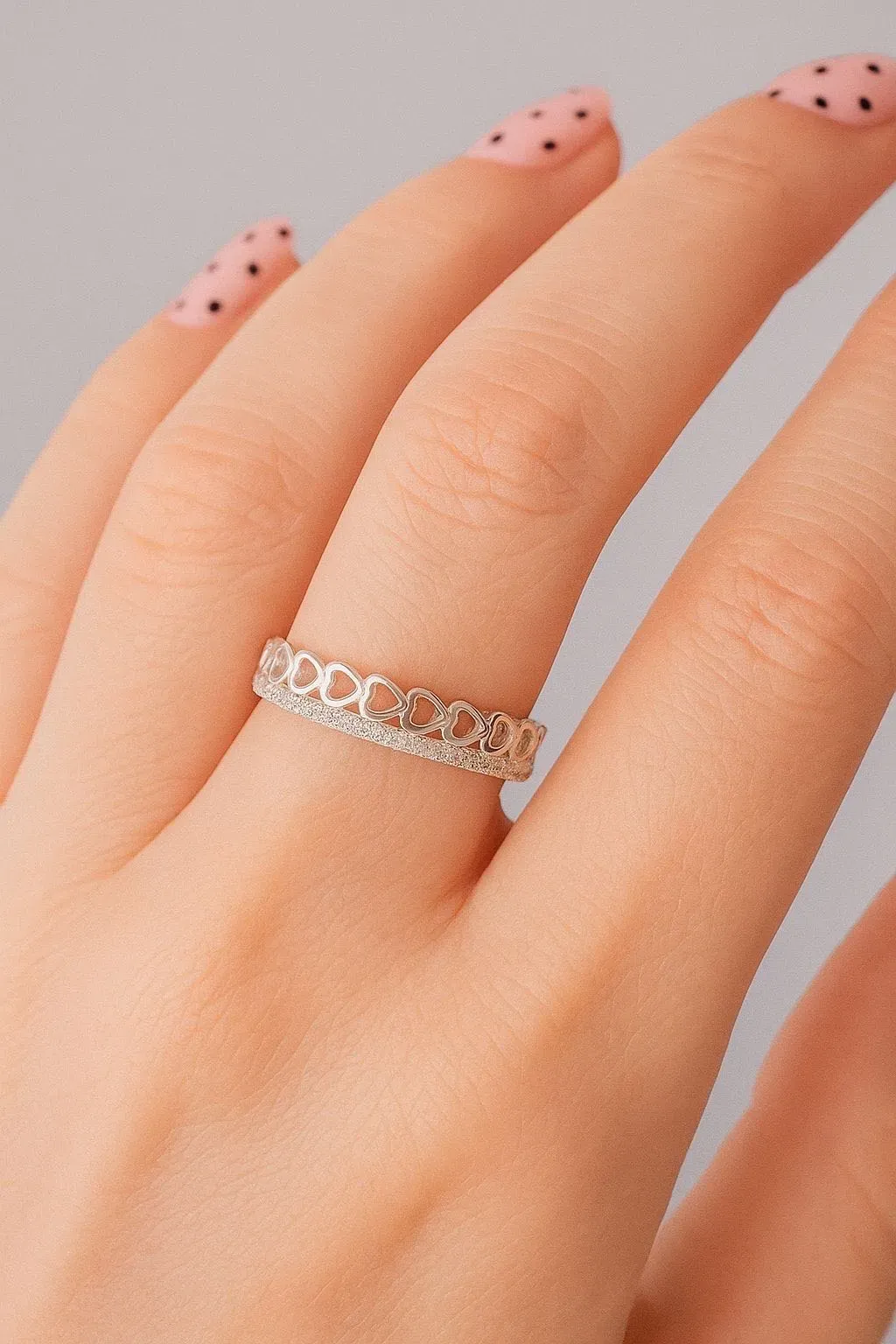 ✨ Anillo Cintillo con Corazones – Plata 925 ✨📏 Talla: 7.5
