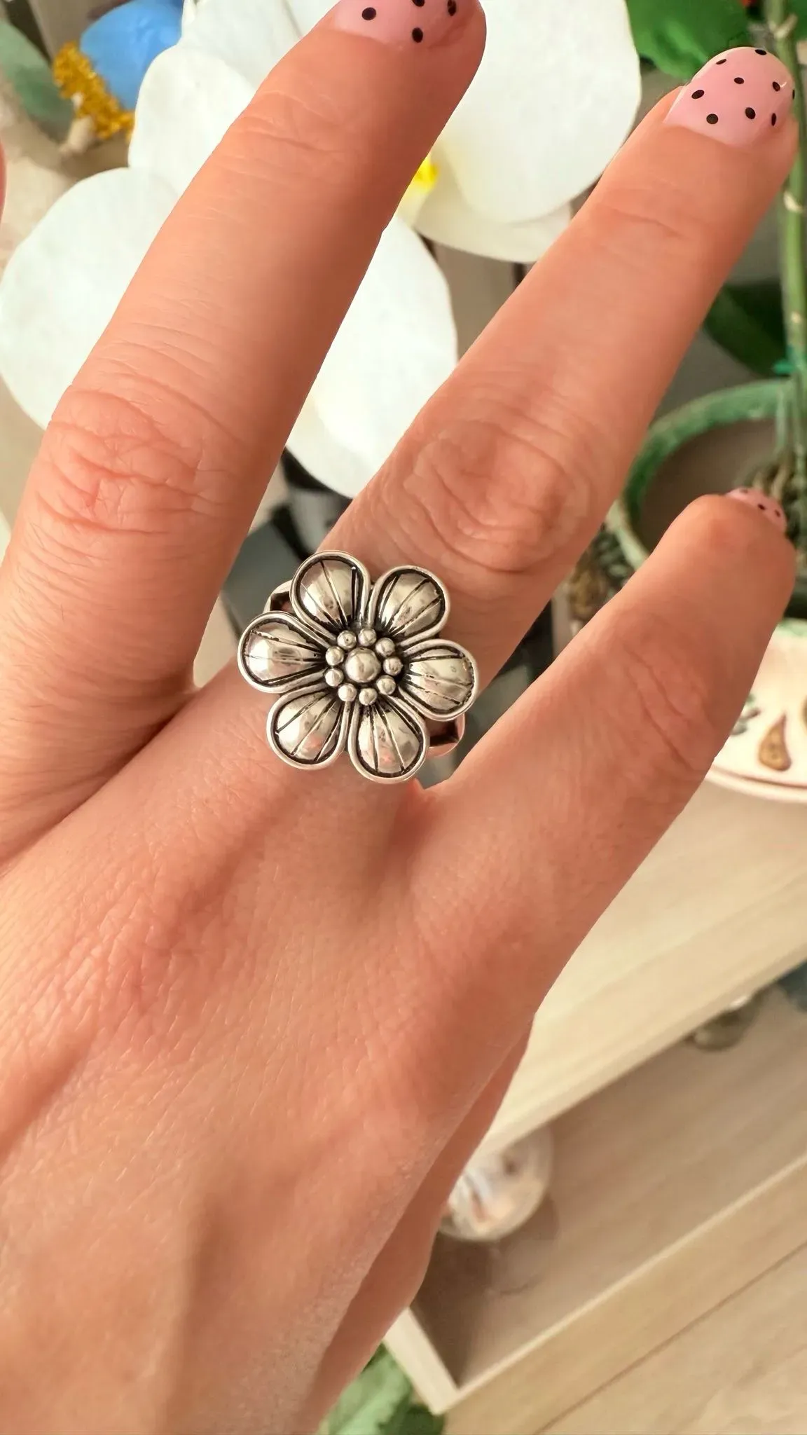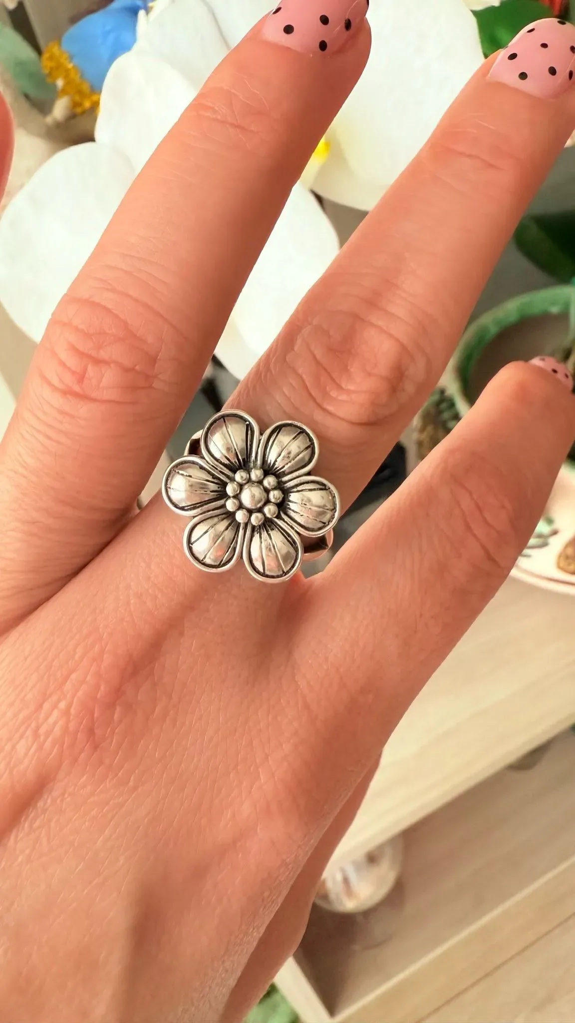 ✨ Anillo Diseño Girasol – Plata Quemada 950 ✨📏 Talla: 8,5