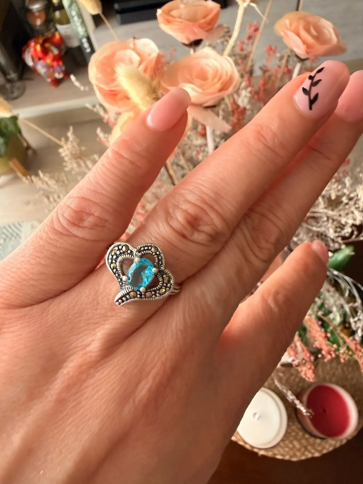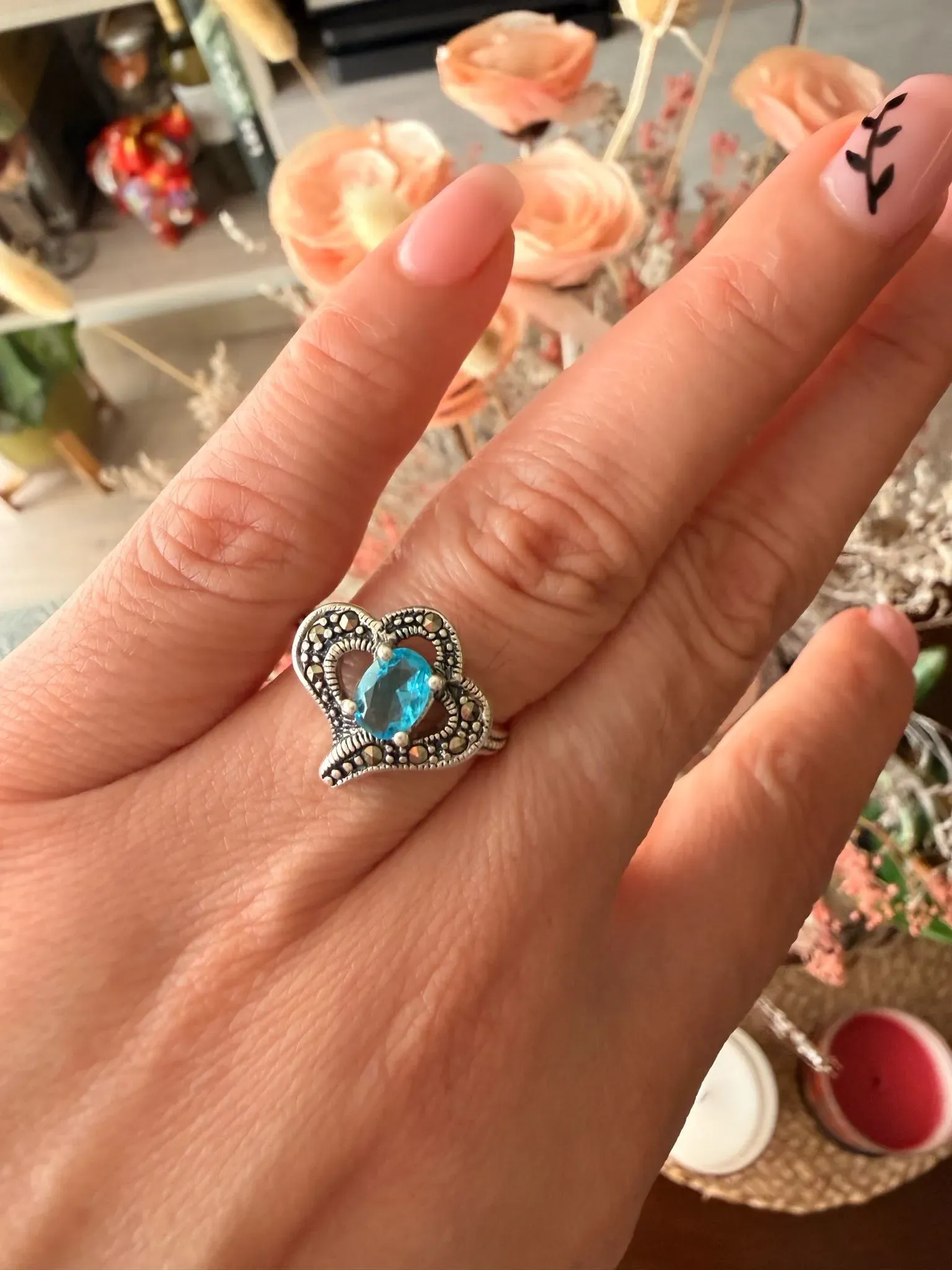 Diseño artesanal y sofisticado, elaborado a mano en plata 925, con marquesitas y zirconio celeste, que aportan brillo, elegancia y un toque de color único 💫