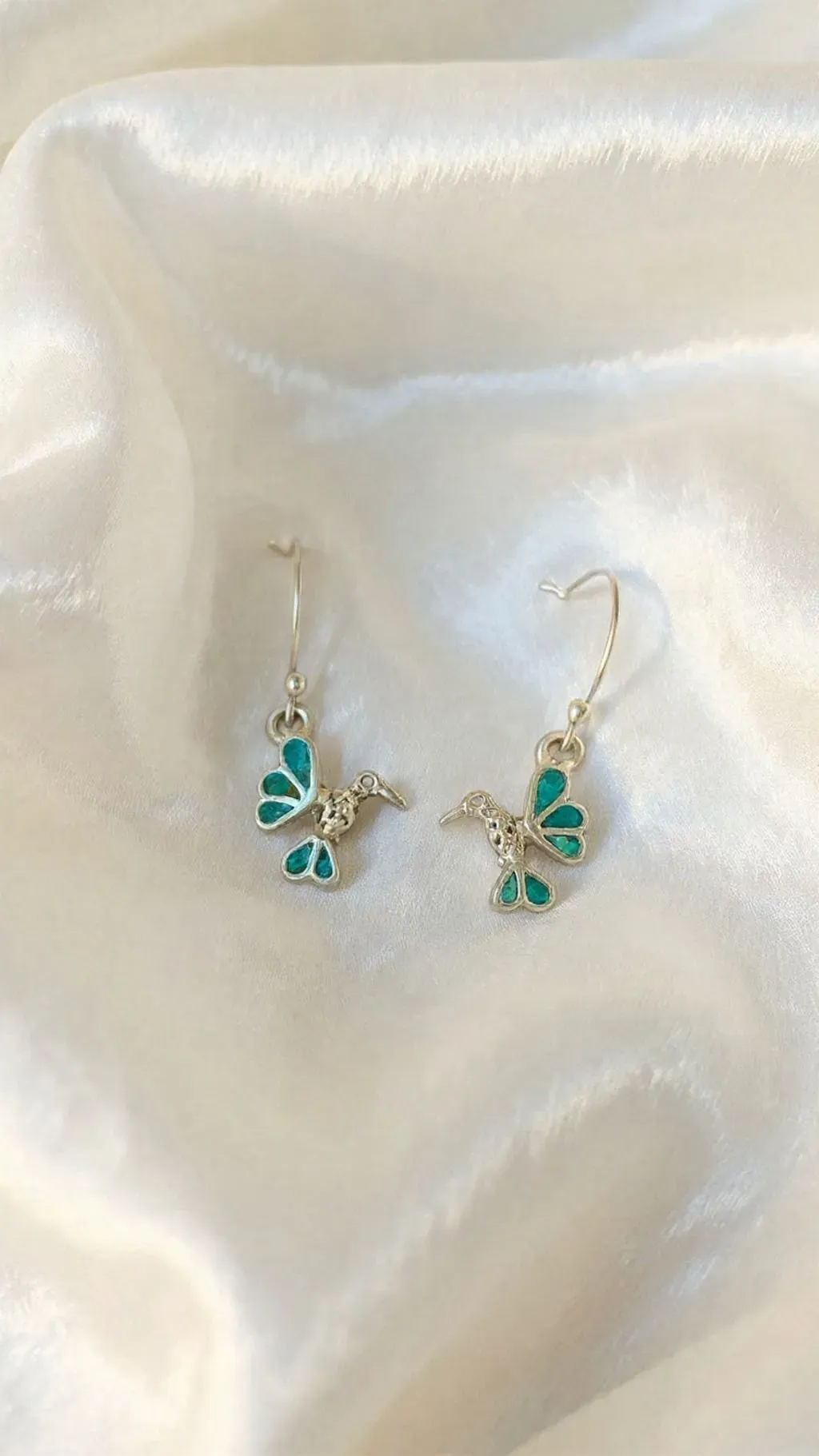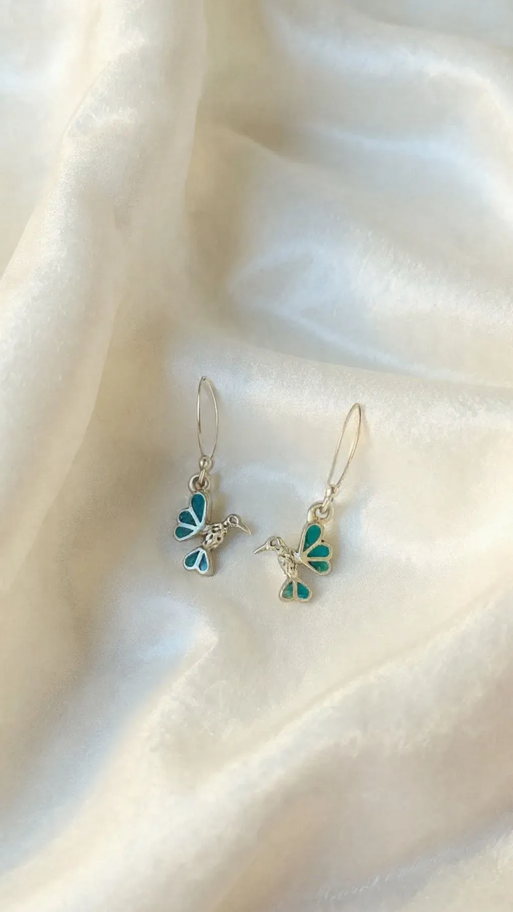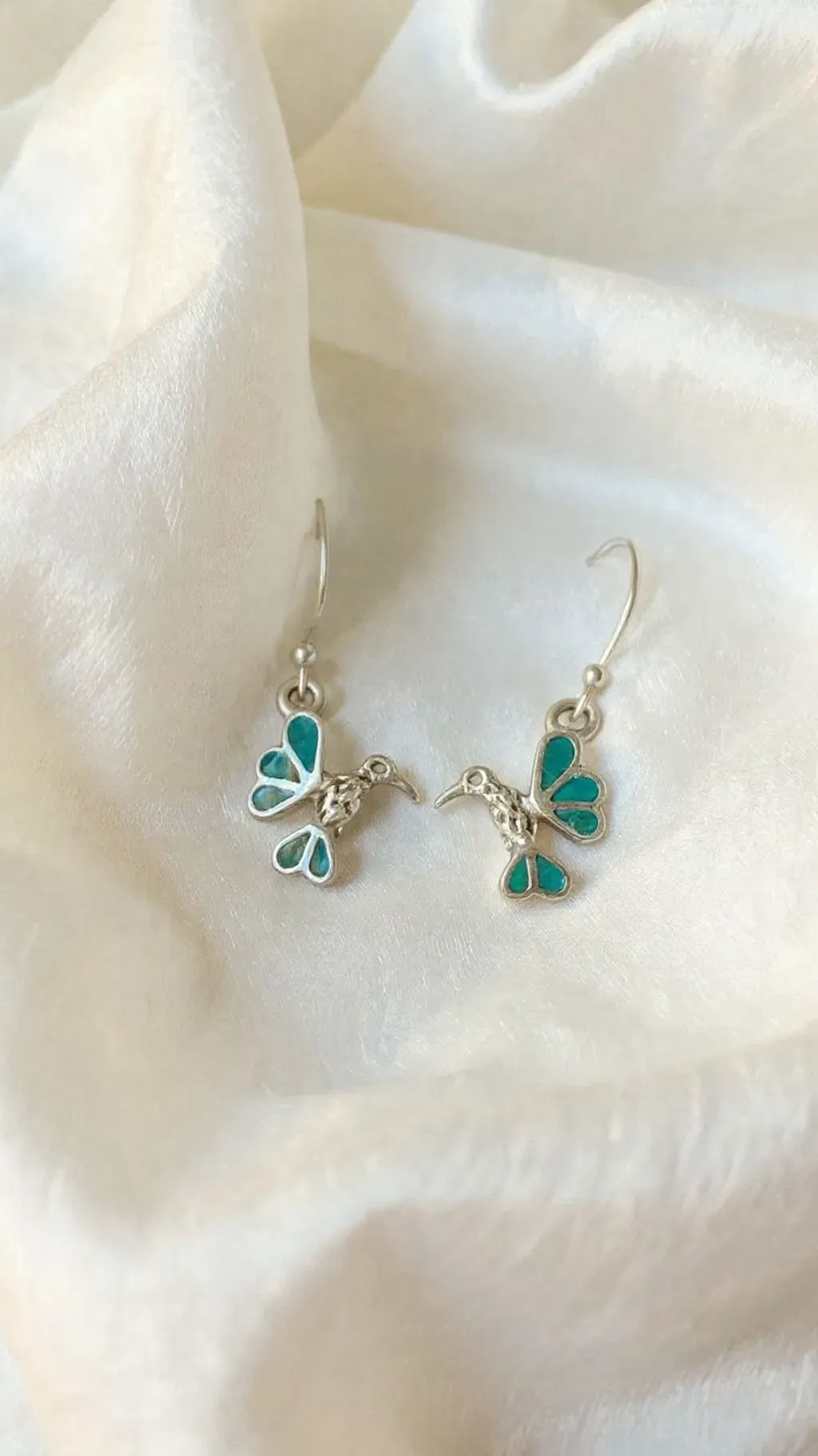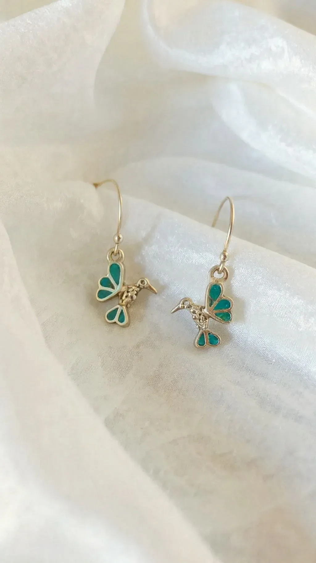 ✨ Aretes de Niña Colibrí con Turquesa Peruana – Plata 950 ✨