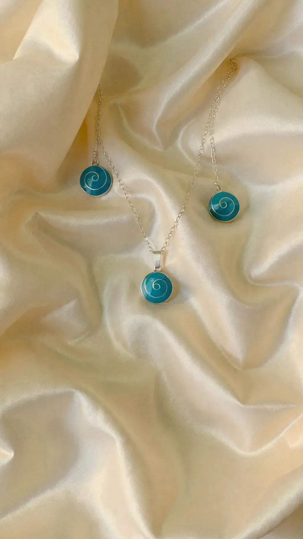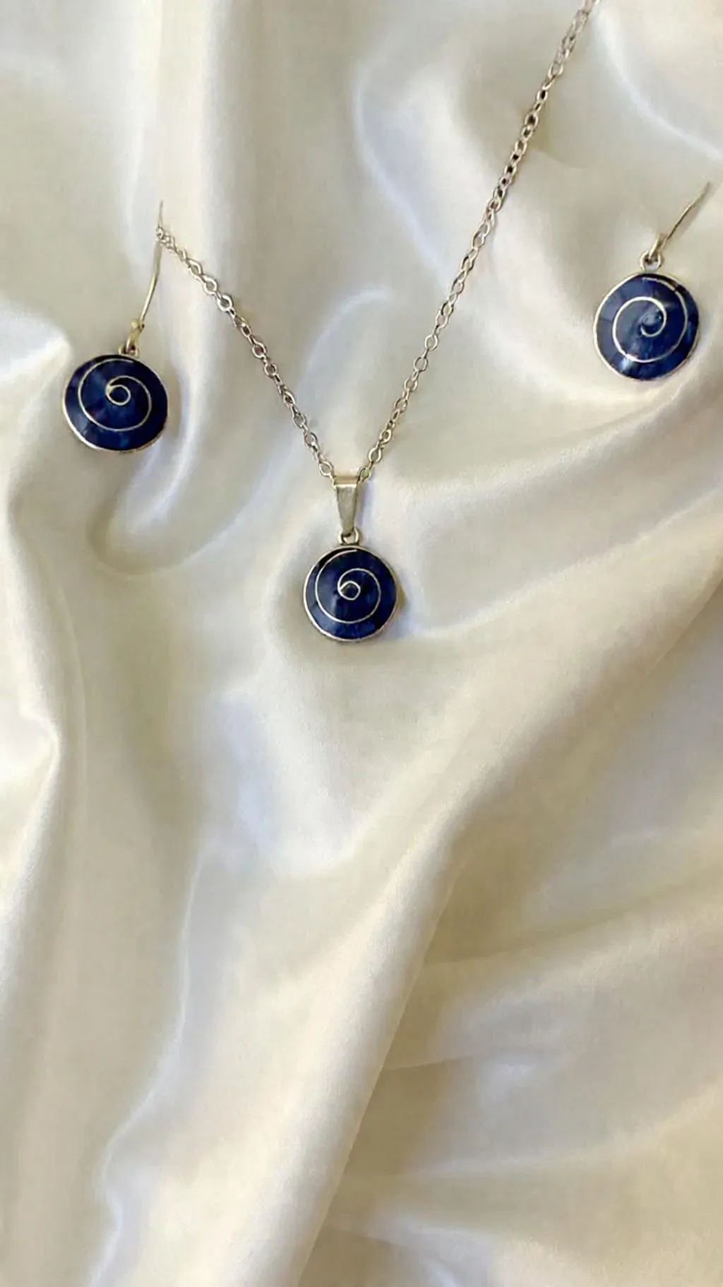 ✨ Colección Plata 950 – Piedras Naturales ✨Incluye:🌙 Dije y aretes en plata 950⛓️ Cadena en plata 925Piezas únicas trabajadas a mano con piedras naturales 🌿