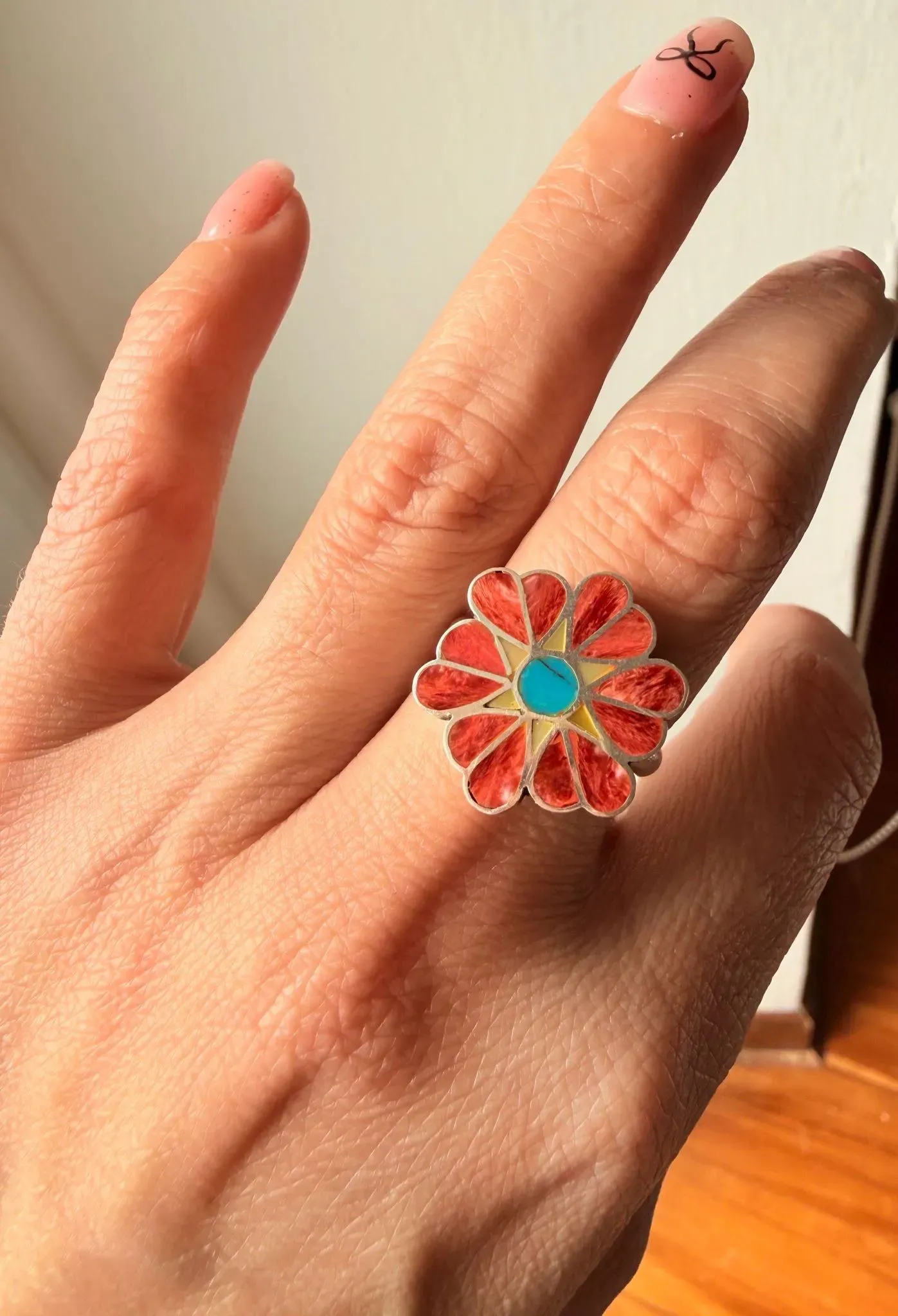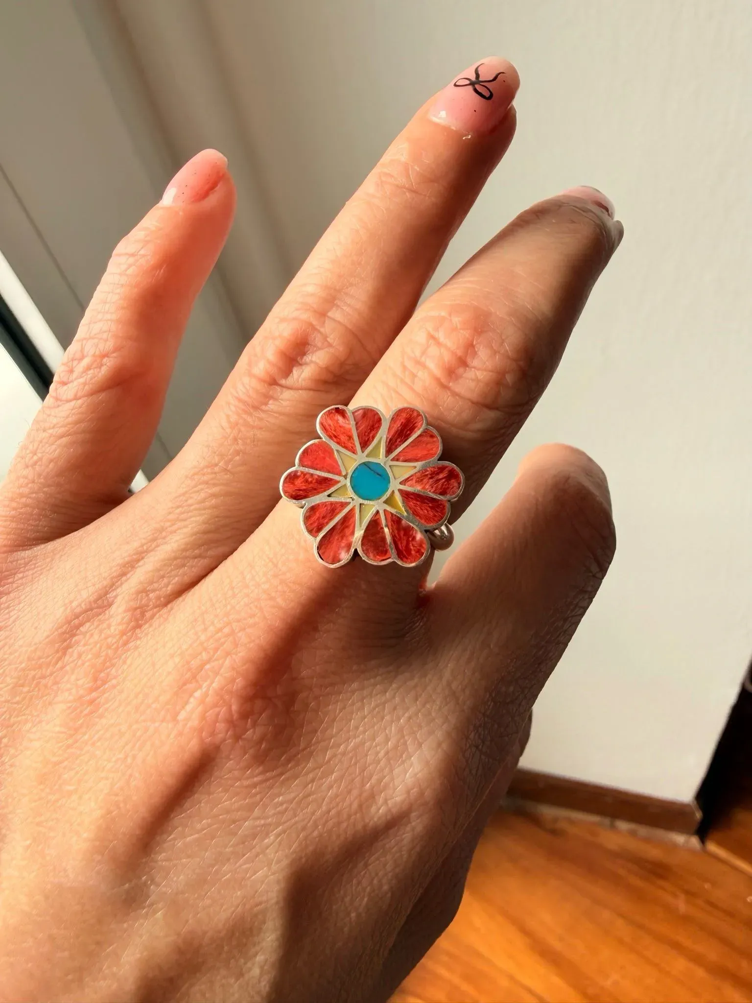 Anillo ajustable elaborado en plata 950, con un delicado detalle de concha marina Spondylus naranja, símbolo de energía y conexión con el mar.