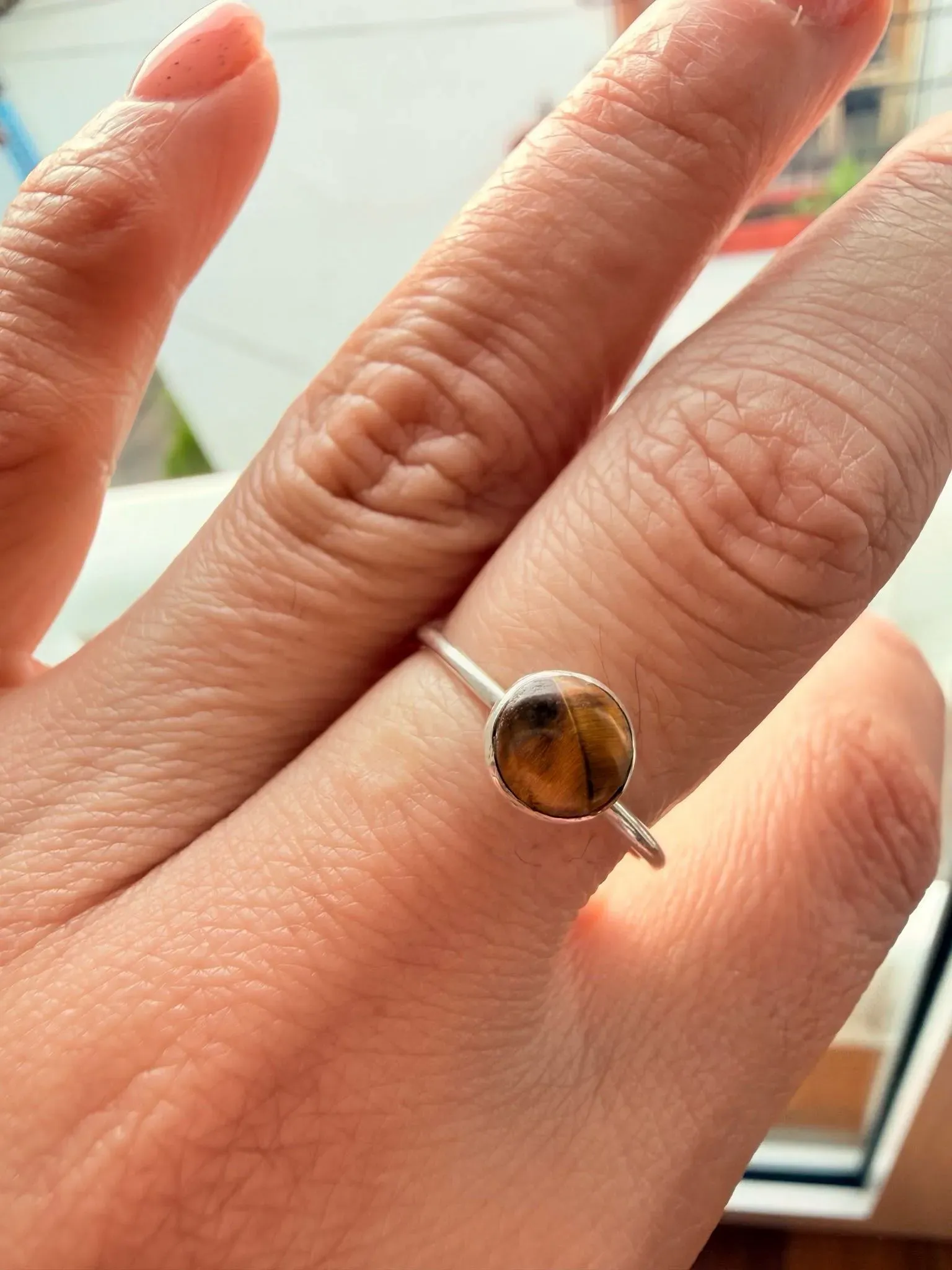 Anillo elaborado en plata 950, con piedra natural ojo de tigre talla 8